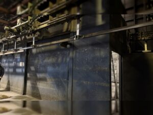 Mainly consist of: Blasting chamber with double doors Monorail steel construction with hooks and transport chain Blasting media bucket elevator Screw conveyor Control and operating